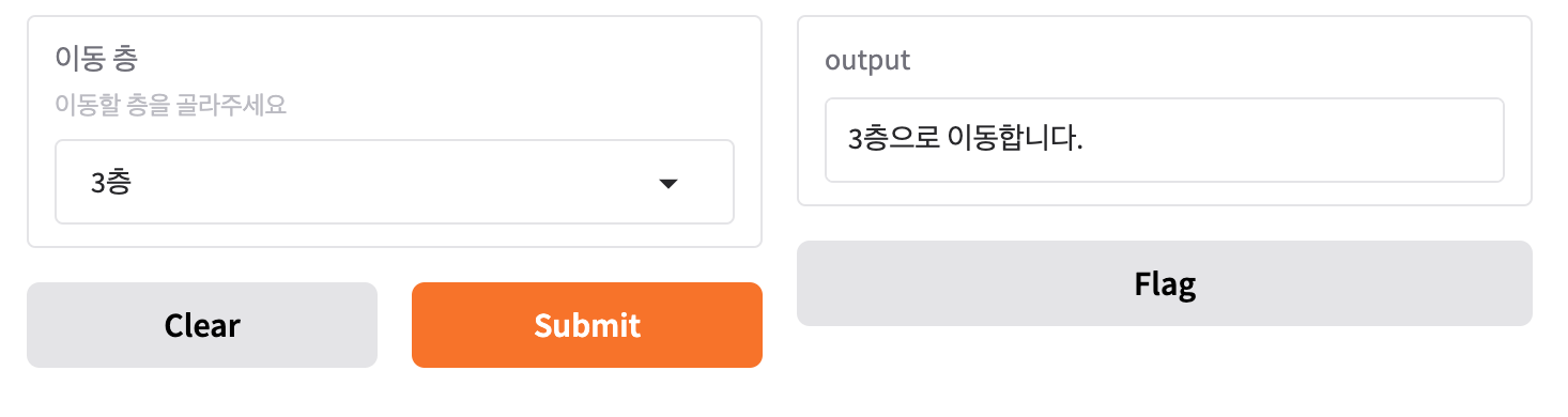 inputs=gr.Dropdown(["1층", "2층", "3층"], label="이동 층", info="이동할 층을 골라주세요"),