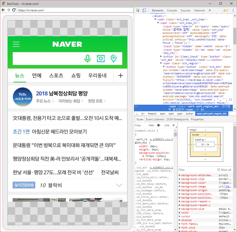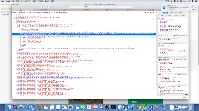개발자용-기기이름-inspect하고 싶은 페이지나 앱을 클릭